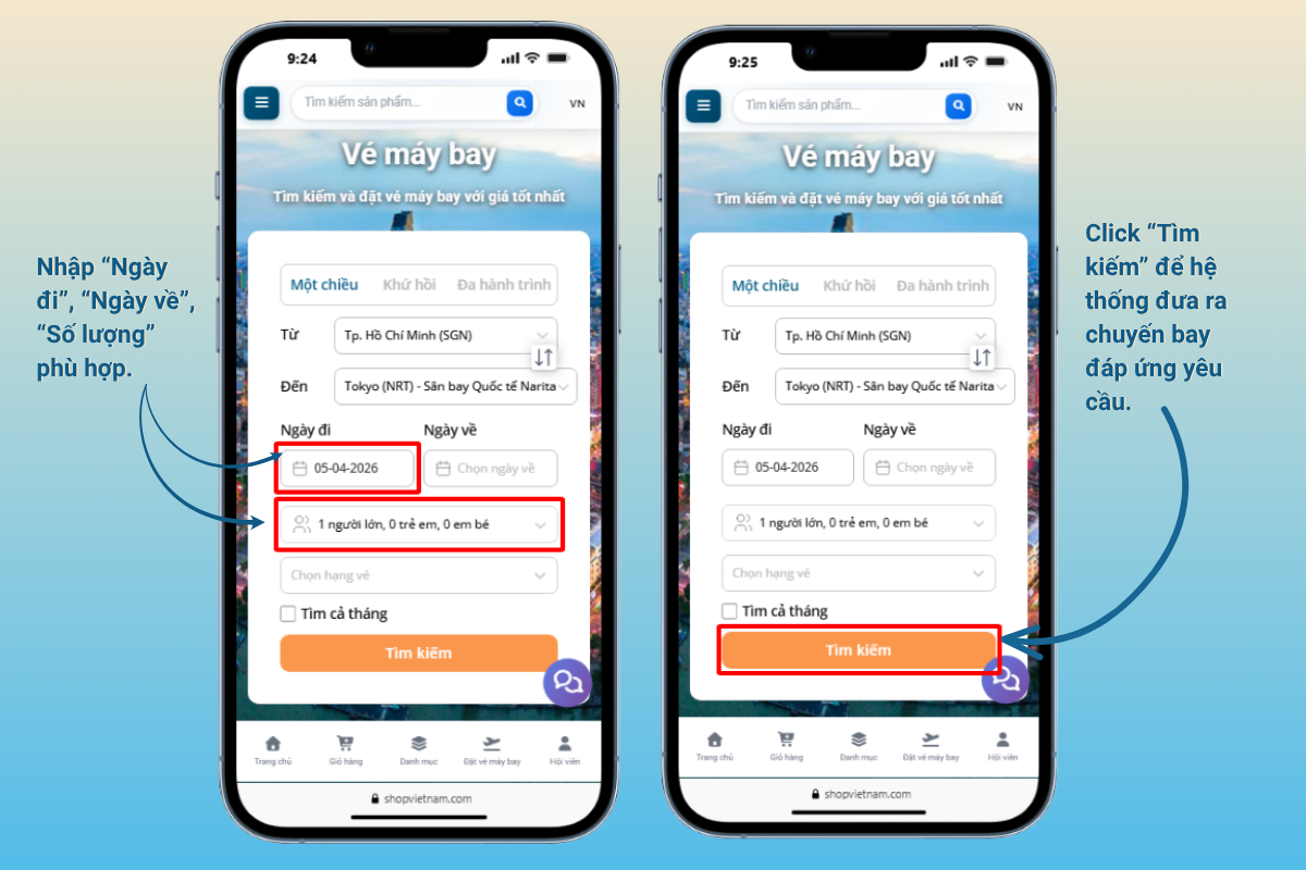 Bước 2: Tìm kiếm chuyến bay phù hợp